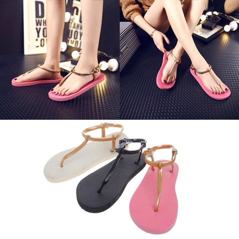 Fashion Wanita Sandal Flip Flop Flat Pantai Model T Strap . Sumber Gambar : shopee.co.id